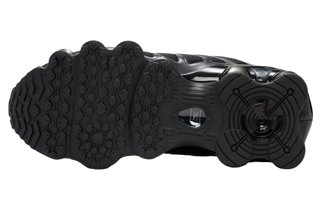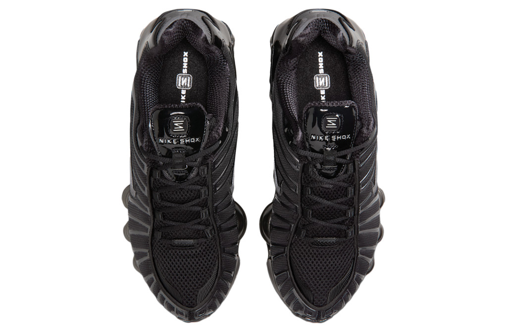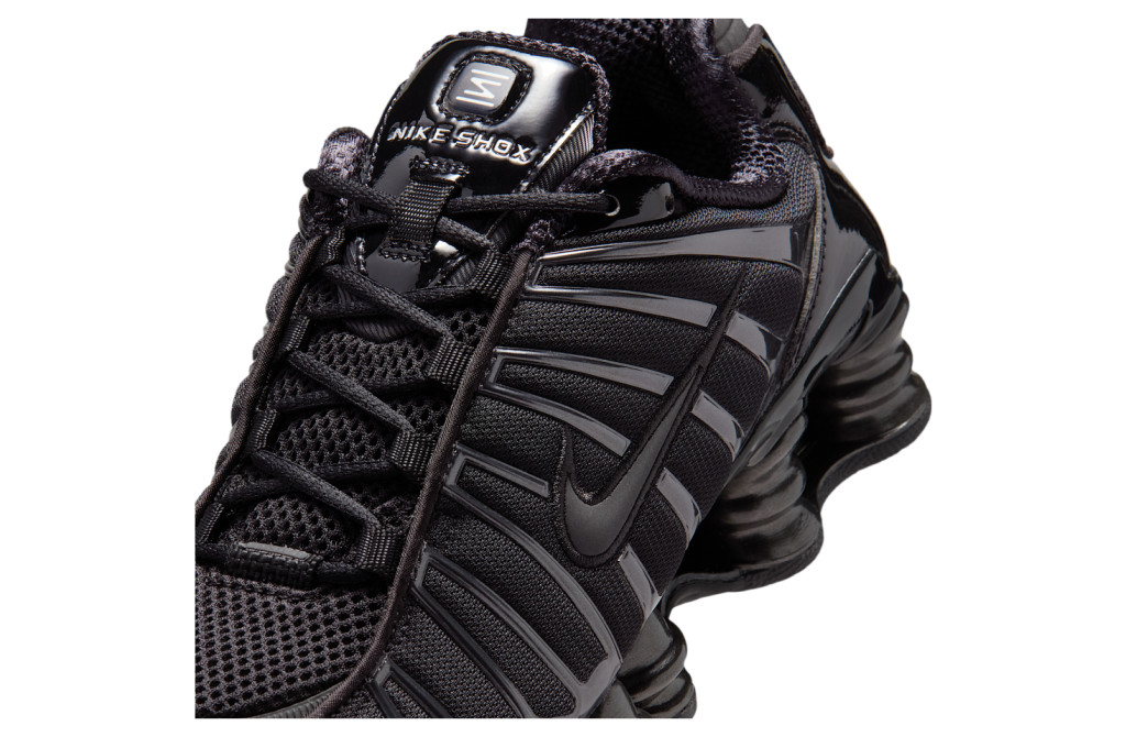 A felsőrész fekete alapszínben készült prémium hálós és szintetikus anyagok kombinációjából, amelyek optimális szellőzést, tartósságot és kényelmet biztosítanak minden lépésnél. A modern TPU cage részletek nemcsak a stabilitást fokozzák, hanem vizuális érdeklődést is keltenek, miközben a Metallic Silver elemek a futurisztikus, csillogó megjelenést erősítik. Ez az elegáns, mégis sportos színvilág jól illeszkedik mindennapi streetwear outfitekhez, ugyanakkor kiemeli a Shox TL jellegzetes vonalait.