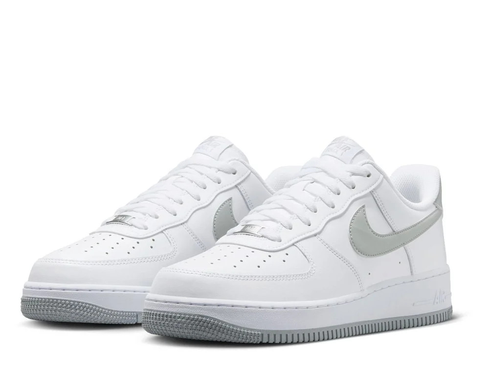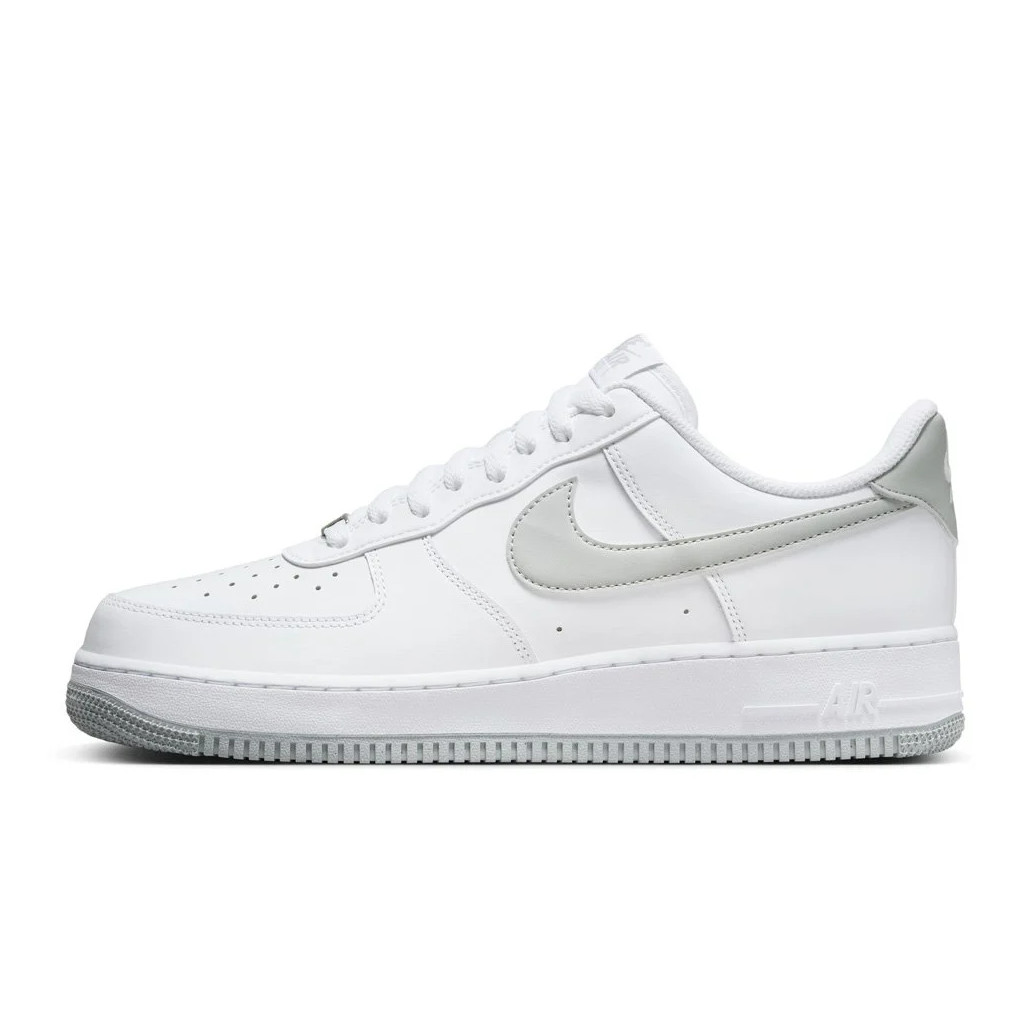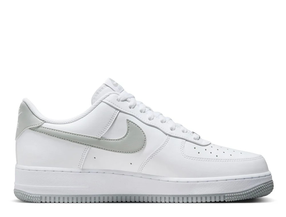 A cipő megjelenése egyszerre elegáns és visszafogott. A fehér bőr alap dominál a felsőrészen, amely tiszta, friss megjelenést ad, miközben a Light Smoke Grey árnyalatú részletek — különösen az oldalsó Swoosh logó, a sarokrész és a talp — finom kontrasztot biztosítanak. Ez a színkombináció univerzálisan kombinálható szinte bármilyen outfithez, legyen szó utcai stílusról vagy sportosabb megjelenésről.